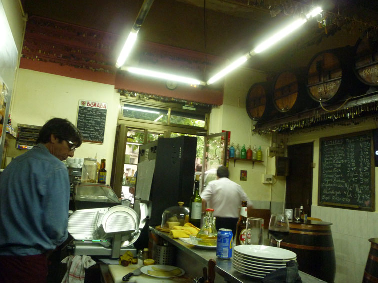 Tornant al temps present, l’Alberto i en Shawn han conservat la bodega tal com estava. Han assumit la responsabilitat de mantenir la col·lecció de clauers vigilant que ningú en mangui cap. Segueixen mantenint les botes amb vi per despatxar a doll. Si mames és millor fer-ho amb algo a la panxa. Aquí els nostres amics s’ho han currat. Heu menjat mai un entrepà de formatge amb «morcilla de ciervo» ? (Ho poso en castellà perquè, com el bratwurst, no és pot traduir). A la Carol ho podeu provar. Parlant de formatges, han contactat amb proveïdors d’arreu per tal d’escollir els millors. Un dels productes estrella són els Torreznos de Sòria. Són tires de cansalada fregides seguint un protocol que controla al màxim els temps i les temperatures; en altres paraules un pecaminós xute en vena de colesterol cruixent.