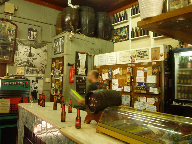 Que pots picar a dins? Recomanem les anxoves. És l’únic lloc que coneixem que les anxoves les tenen en sal, té les netegen i preparen al moment. És moralment obligatori tastar-les. També tenen molt bona la moixama, el seitó en vinagre, les sardines en escabetx i vermut de la casa en bota. La geografia humana que hi trobaràs és força autèntica del barri. En l’època en que les operacions de carrega i descarrega dels vaixells es feia a aquella banda del port, hi havien milers d’estibadors que al matí es presentaven a la feina i si n’hi havia treballaven i si no n’hi havia cobraven mil o dos mil pessetes i els enviaven cap a casa. La majoria anaven a passar l’estona als bars de la zona, entre d’ells «El Loquillo». En èpoques més modernes el Manu Chao hi anava sovint amb la seva guitarra i organitzava concerts improvisats que es van tenir que acabar perquè si arreplegava massa gent i hi havia problemes amb els veïns. Tot i la quantitat de guiris que hi ha al barri, no és un local on te’ls puguis trobar, la clientela és gent coneguda del barri.